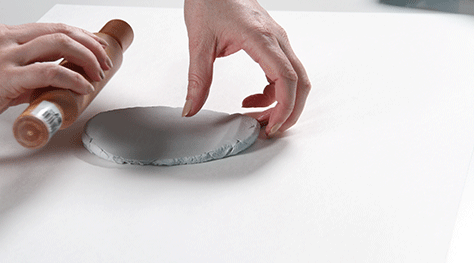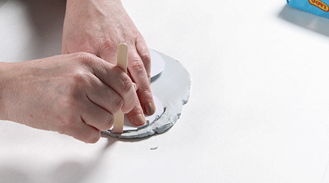 Roll out modeling clay evenly (about 1/2cm works well). Trace new circle shapes on paper and cut them out. Place the circle shape onto the clay and cut out your shape. Using a skewer or (for older students) a sharp tool, scratch your design into the clay. Be sure to put a hole in the top. Older students can start with a thicker piece of clay and remove areas of clay to create raised areas as well as engraving into the surface of the clay.