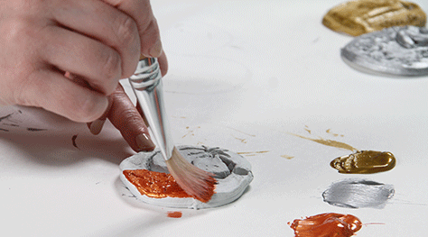 Leave clay to dry overnight (ensure it’s in a dry, warm area), then paint with metallic paints, thread with ribbon, material off cuts or string.