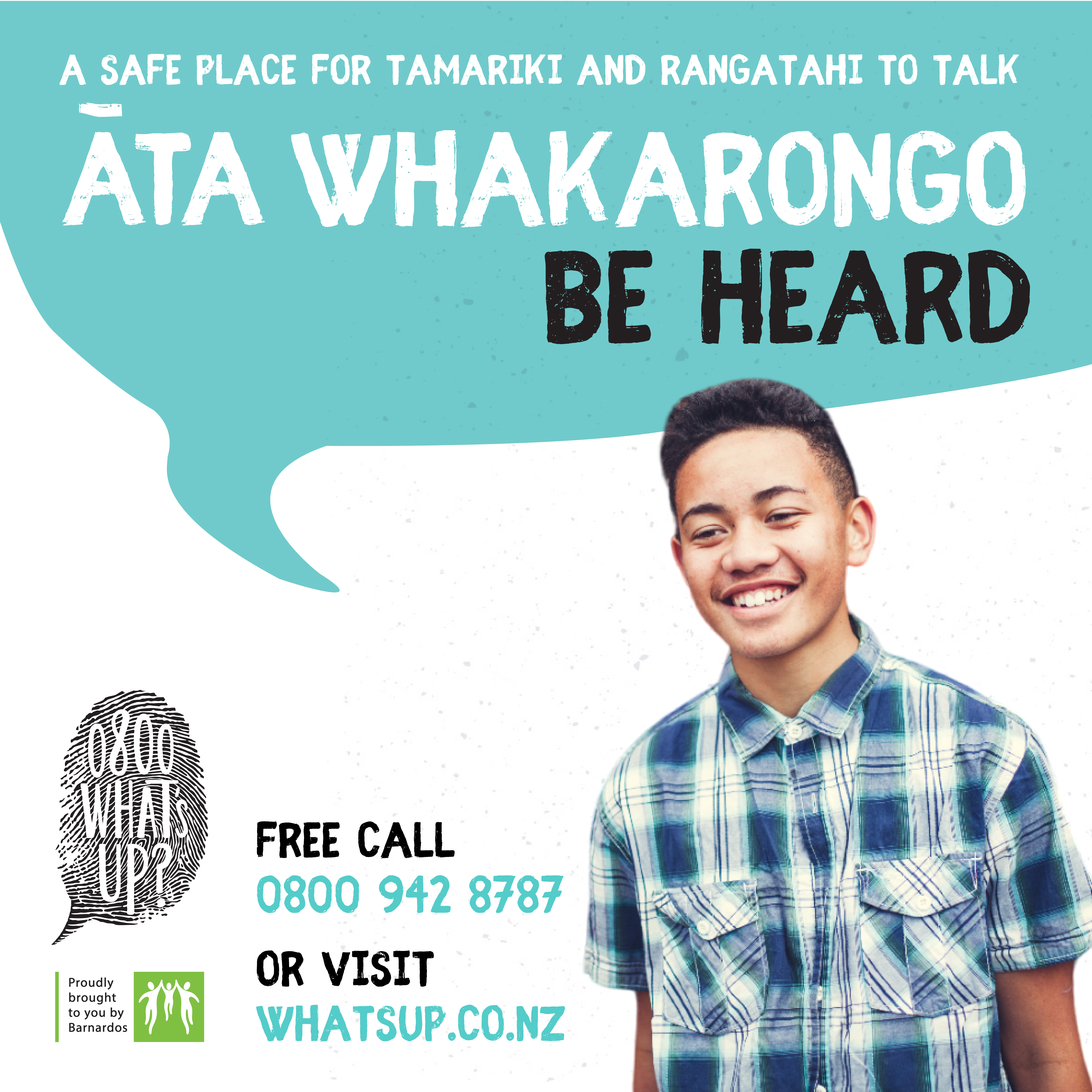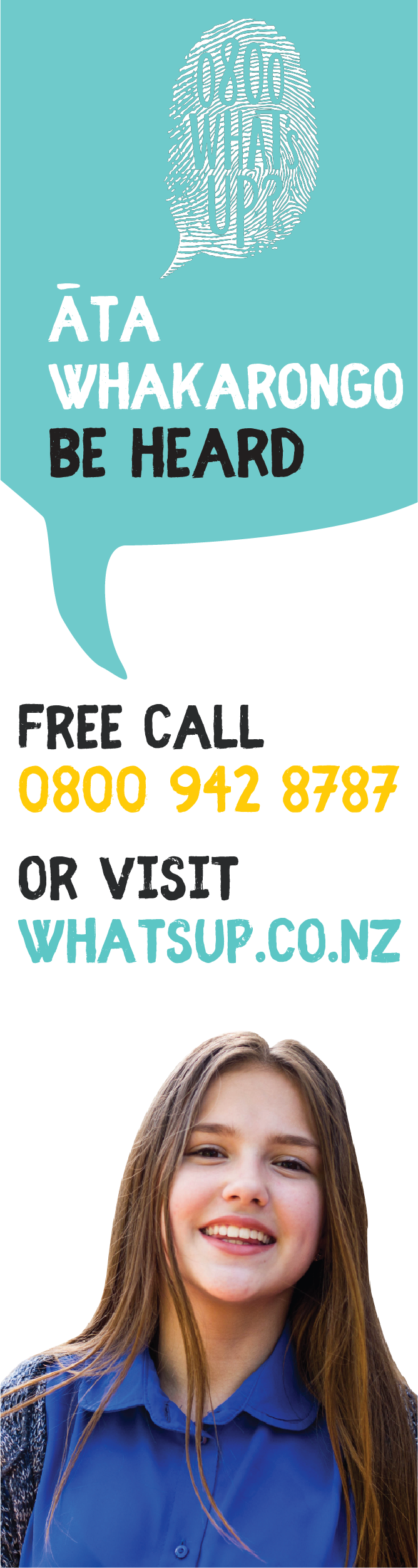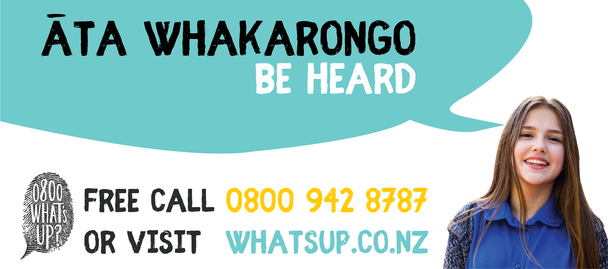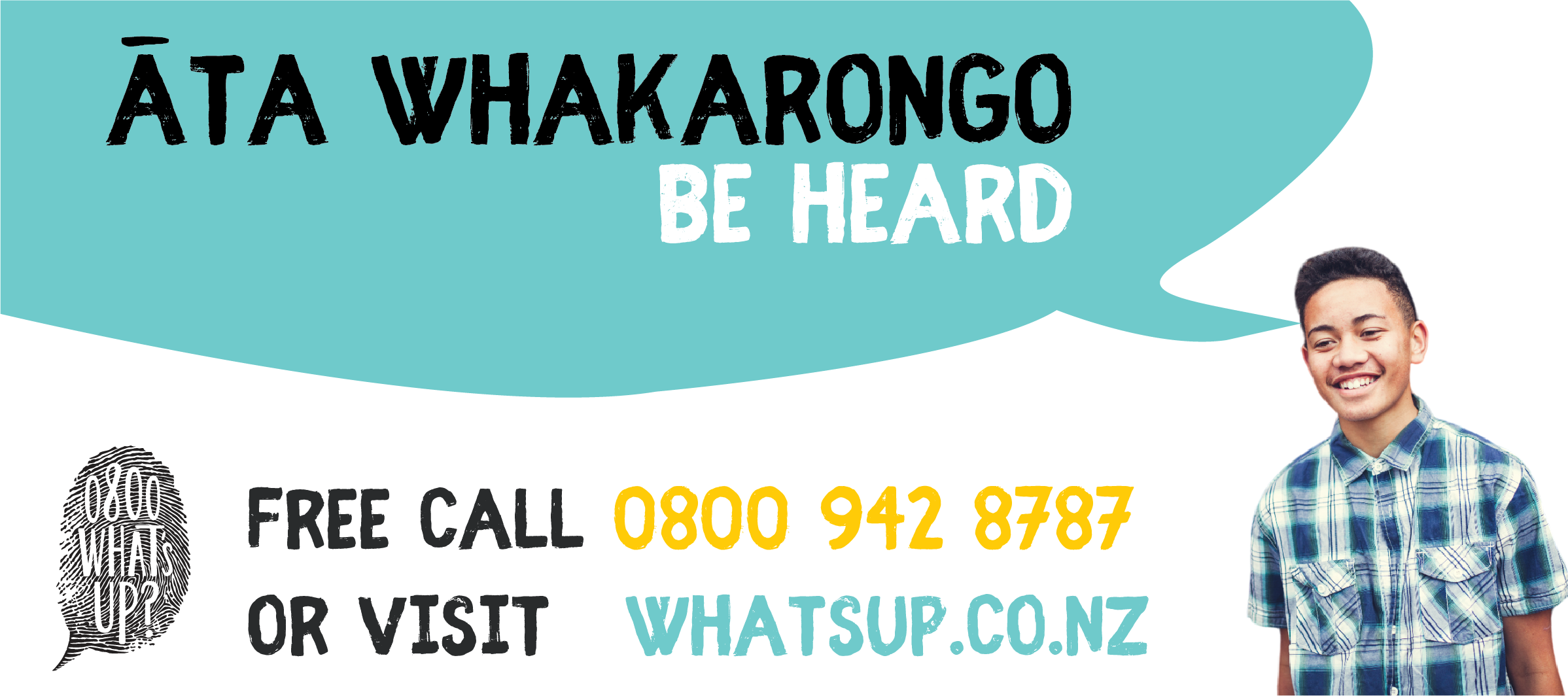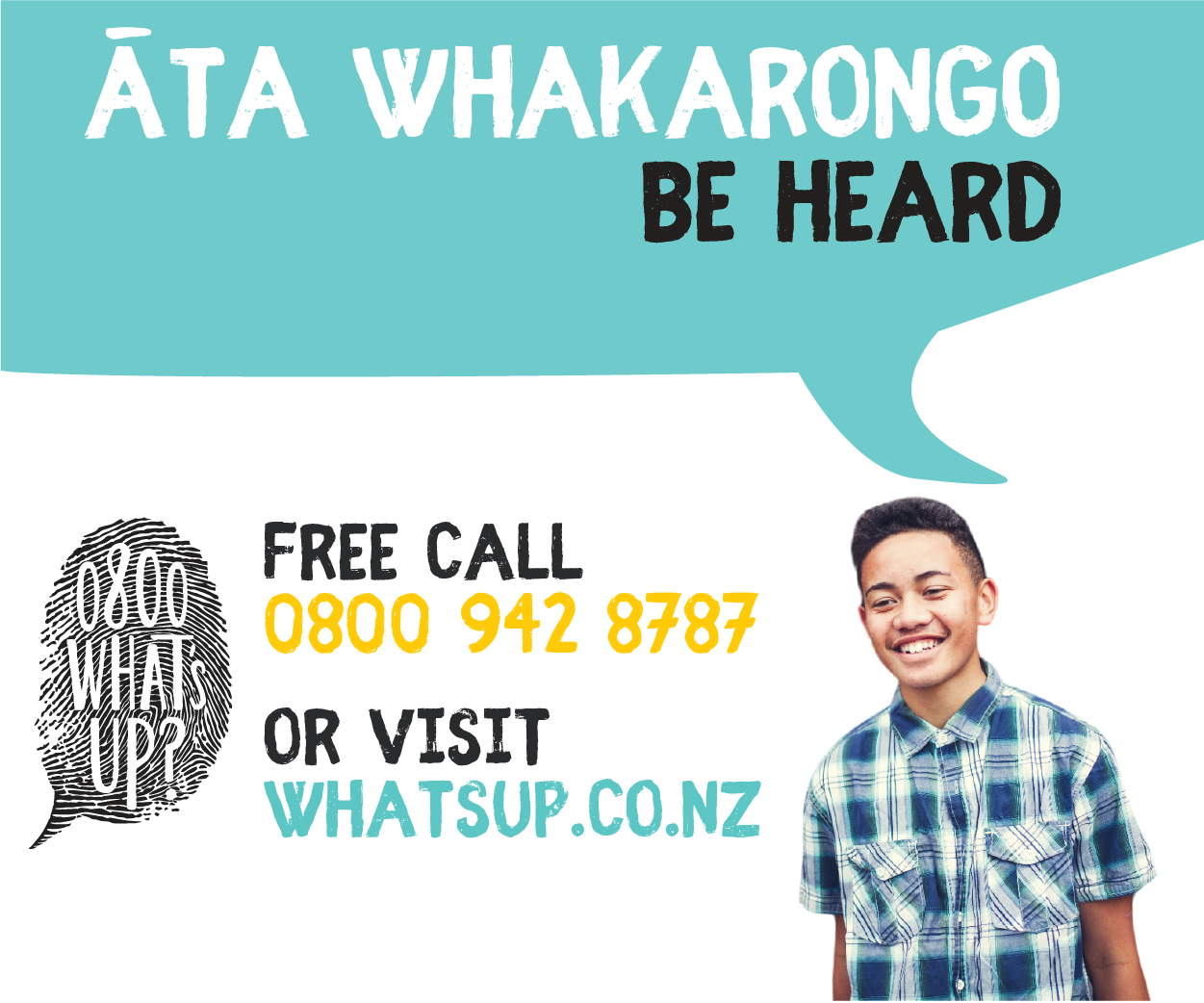 Please use the resources below and encourage the tamariki and rangatahi you work with to get in touch with 0800 What's Up. Tip: Some schools have found it beneficial to arrange a group call to 0800 What's Up, facilitated by the classroom teacher, asking questions of the counsellor and demonstrating how easy it is to seek help via 0800 What's Up.